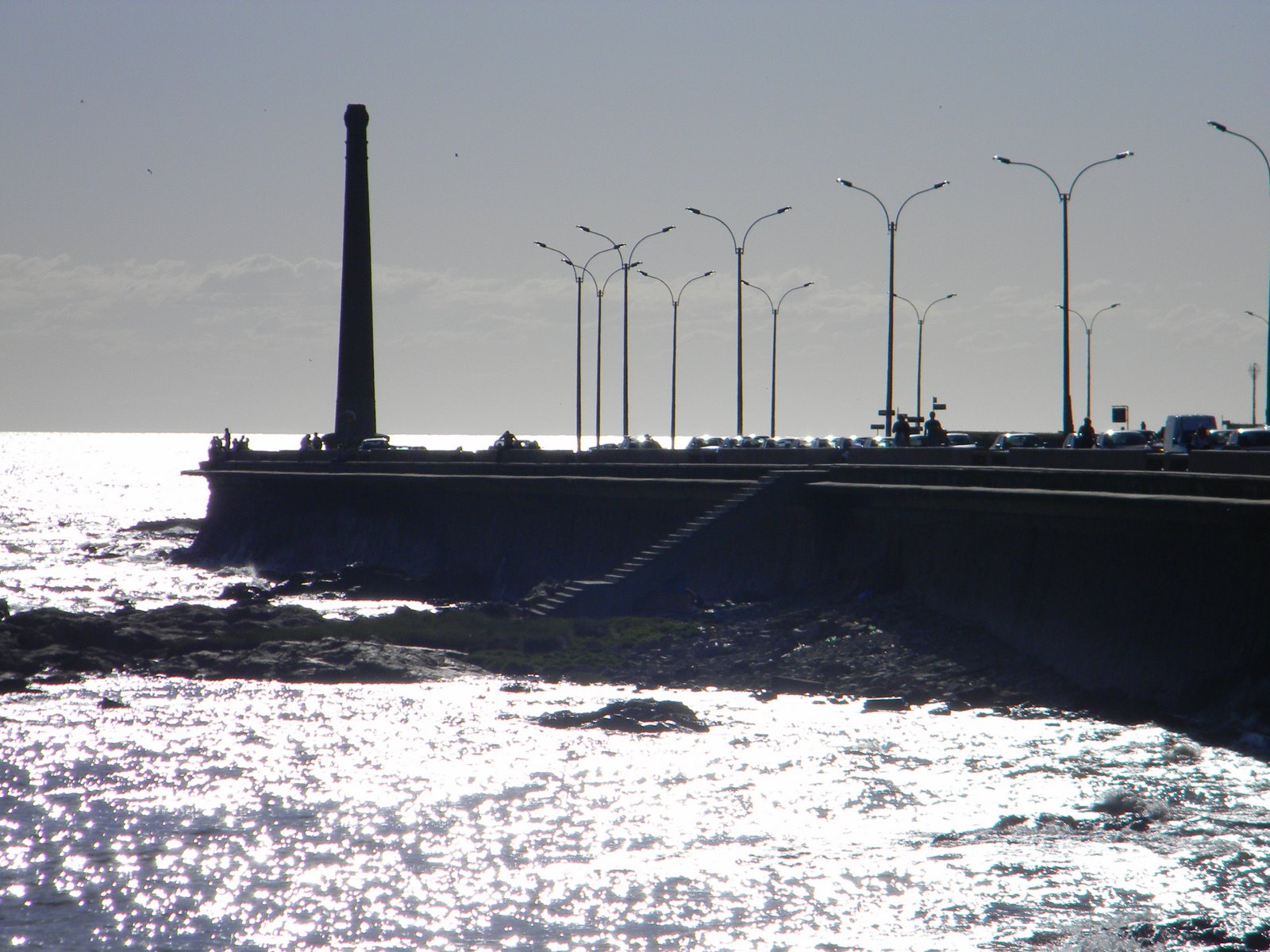 Escollera de entrada al puerto, vista y pescando